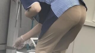 【画像】セレブ人妻さん、細い路地でガッツリTバック透け見え