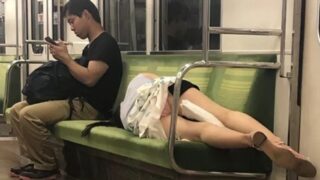 【画像】飲み会帰りの女子大生さん、電車でこんな姿の泥酔パンチラ