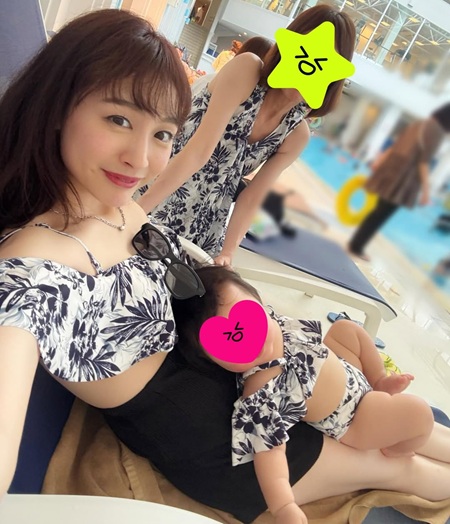 【画像】新井恵理那(36) 娘と水着ショット