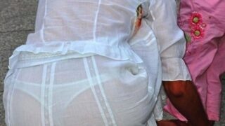 【画像】子連れ人妻さん、Tバックが透けてしまう