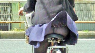 【画像】自転車乗ってるミニスカお姉さん、風でパンチラ
