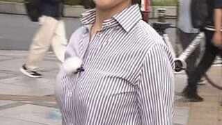 【GIF】角谷暁子アナ、背中をそってデカ乳をガッツリ突き出す