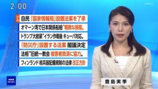 【画像】NHKお昼ニュースの豊島実季アナ、ジャケットがバシッと決まってる