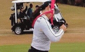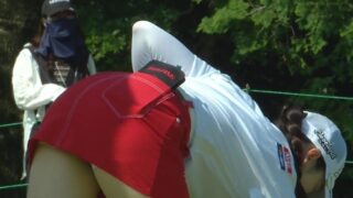 【GIF】美人ゴルファー・臼井麗香、前かがみ見せパンがそそる