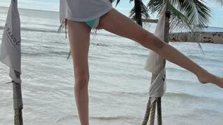 【動画】渡邊渚、夕暮れの浜辺で白ビキニ&シースルー姿